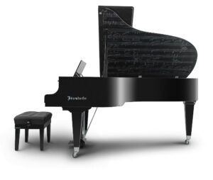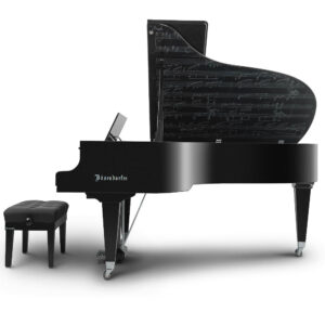 Bản gốc của “Sonata Ánh Trăng” của Beethoven được đặt bên trong nắp đàn piano bằng kỹ thuật in lụa phức tạp. Hình ảnh của Beethoven trên giá đỡ nhạc và chữ Bösendorfer được khảm từ ngọc trai lấp lánh.